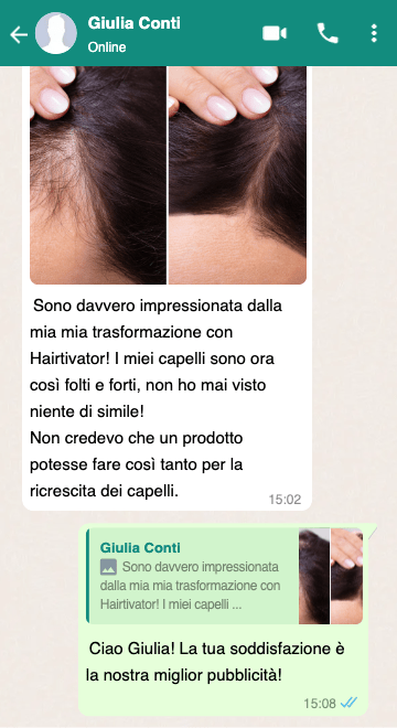 USANDO REGOLARMENTE HAIRTIVATOR OGNI GIORNO, POTRAI GODERE DI UNA CHIOMA PIÙ FOLTA E VIGOROSA, RIDUCENDO SIGNIFICATIVAMENTE LA CADUTA DEI CAPELLI IN POCHISSIMO TEMPO!